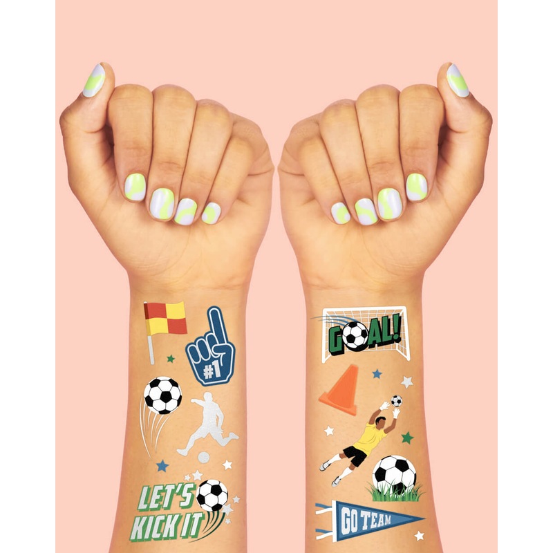 MVP of the party. Perfect team sport activity or party accessory! 54 designs total means no rookie or all star gets left behind. Call your whole team, they're gonna wanna huddle up fast. These tats are gonna kick off a great party! 54 temporary tattoos on