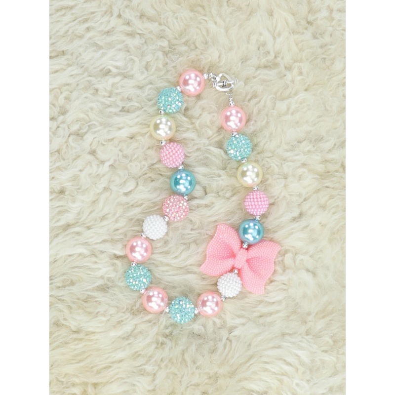 Be the first to review “Sparkly Bow Blue/Pink Bubblegum Necklace”