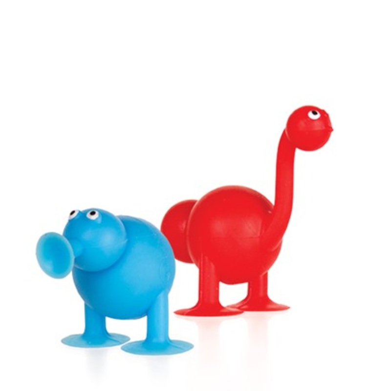 Nine assorted styles of colorful characters with suction cups that will stick on any smooth surface, sold individually.Color and character will be selected at random. If you have a color preference, please place that in the note section at checkout. Second picture shows retail packaging so you can see which other colors are available (purple, green, yellow, red, blue).