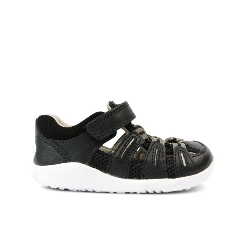 The Summit is our new action sandal ideal for all terrain adventures. In a bold black and charcoal colourway, the Summit features bungy elastic that accommodates different foot widths and extra flexibility, with soft microfibre overlays for comfort. A hardwearing Aktiv sole and water-friendly leather provides durability for summer exploration, while an adjustable ankle strap and padded collar keeps feet secure and supported. Suitable for first walkers, this style fits true to size.