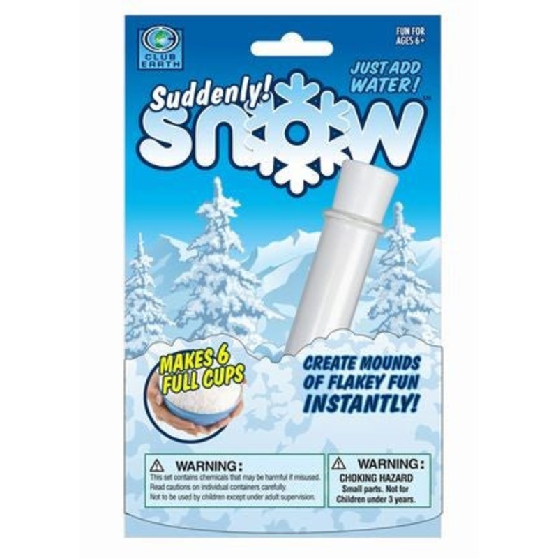 Here’s an innovative substance that’s a real arctic blast! Just pour out a small amount of Suddenly Snow crystals, add water, and watch the snow grow and grow and GROW, creating mountains of cool, puffy play stuff. Pop some in the freezer and make snowballs or use it in arts and crafts projects.