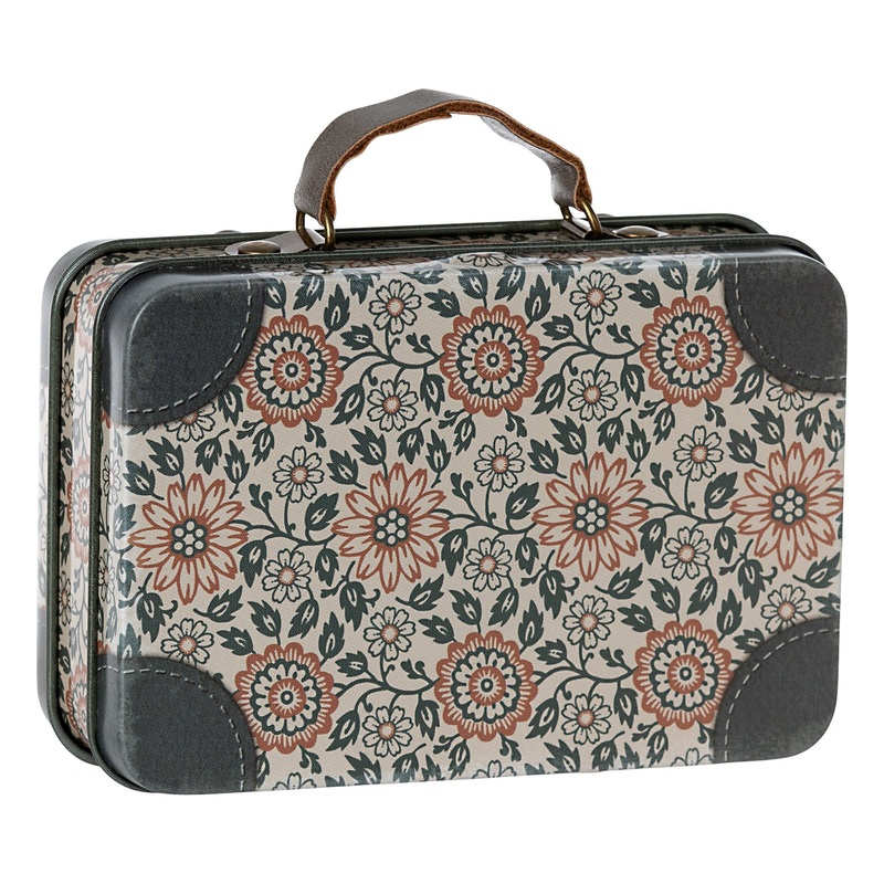 The classic Maileg metal suitcase in a new beautiful print. Fantastic for any occasion; small gifts, gift cards, storage of small items or for small soft toys.Sku: 19-3601-00Size: SmallHeight: 2.75″Width: 4.33″Recommended age: +3 yearWash: Surface washMaterial: Metal
