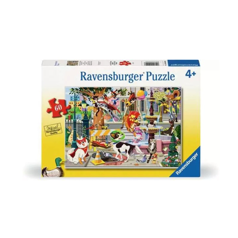 The Super Dogs to the Rescue Ravensburger 60 piece puzzle for kids age 4 builds fine motor skills, problem-solving, and focusall with superhero dogs on the job. Big, sturdy pieces fit just right for preschoolers and give them a fun, screen-free way to stay engaged. Theres action in every cornerfountain mishaps, manhole saves, and one very lucky cat. Packed with playful art and skill-building power, this puzzle delivers more than just fun.