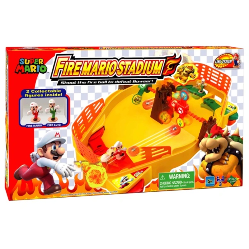 FeaturesContents: 1x Fire Mario Figure, 1x Fire Luigi Figure, 1x Base Unit, 2x Fence, 1x Bowser Tower, 1x Bowser Plate, 2x Side Towers, 2x Target Units (Red & Green), 2x Fire Balls & 1x Label SheetIncludes 2 Super Mario figuresNumber of players: 2-4Shoot t