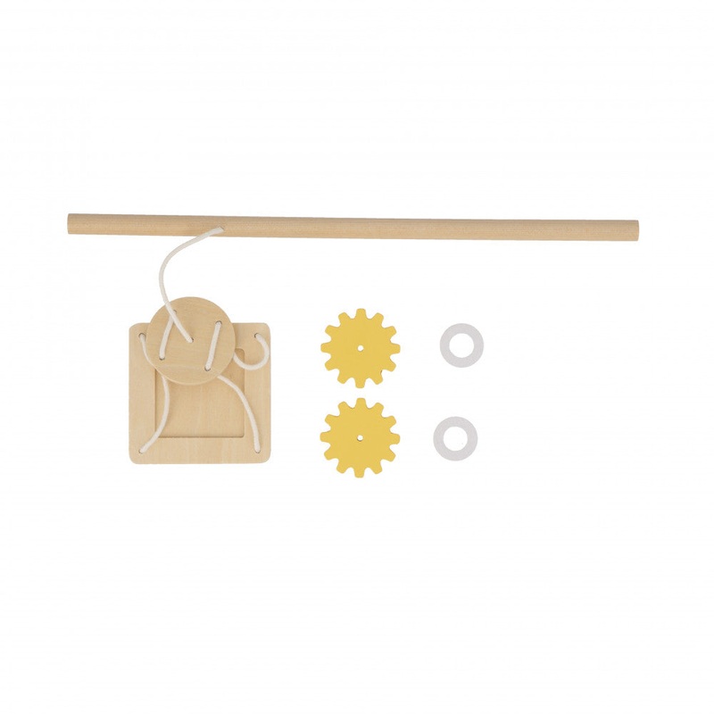 Gondola with sturdy design. Includes beam for support. Features 2 handles for easy use. Equipped with gear for functionality. Comes with 2 felt washers for smooth operation.