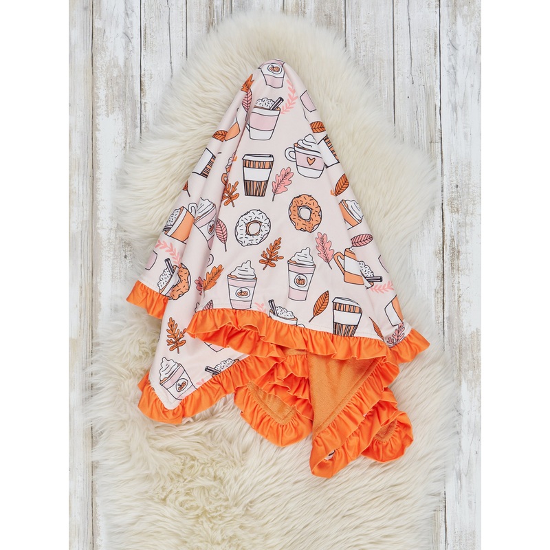 Autumn is in the air, and we’re celebrating with thissuper sweet sister set!This minky blanket features the cutest coffee, donut, and leaf details.