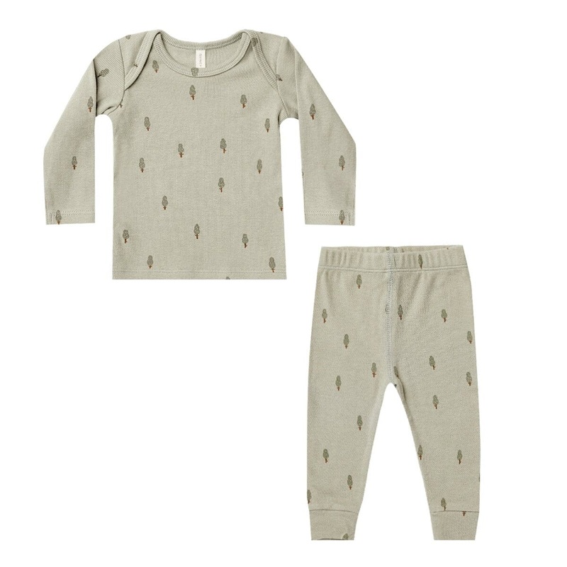Long sleeve lap tee and our leggings in our stretchy rib knit. Slim fit with added stretch to grow with your baby.