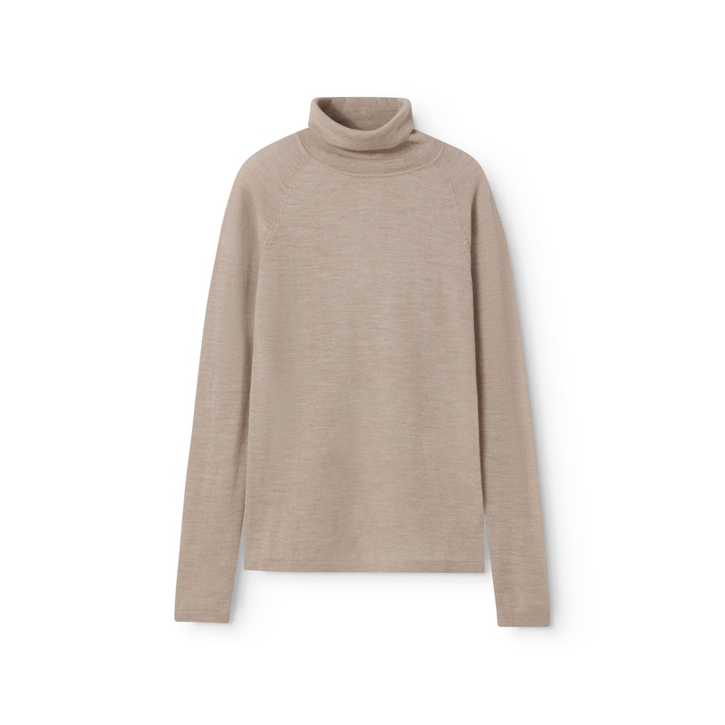 Plain knit blouse for women with a turtleneck, long sleeves and a tight fit. The blouse is soft and warm made of 100% merino wool. Standard 100 by OEKO-TEX certified (OEKO-TEX STANDARD 100 license no. BEYO 0531889)