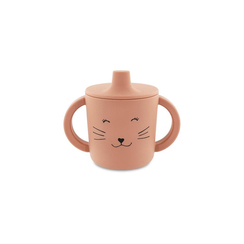 The Trixie Silicone Sippy Cup in Mrs Cat is made from 100% food-grade silicone. The big handles make it easy to use and offer great practice for holding and tilting, while the silicone design prevents any big spills. Plus, it's microwave, dishwasher, freez
