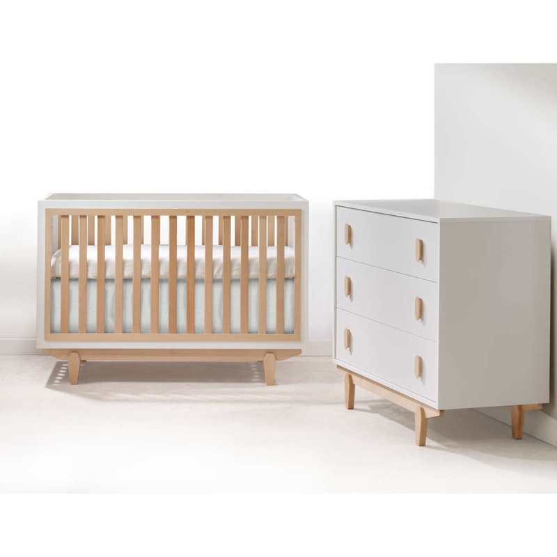 Classic cribMeets all USA and Canadian Safety StandardsLow VOCsMade in CanadaSolid WoodHigh Resistance FinishesHidden Hardware WoodenMattress Supports with Three (3) Adjustable HeightsOpen concept wood slats on all 4 sidesClassic Crib converts into a toddl