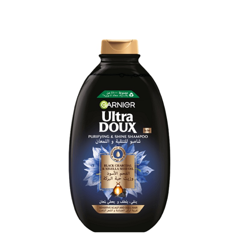 SHORT DESCRIPTIONGarnier Ultra Doux Black Charcoal & Nigella Seed Oil shampoo is a real recipe to purify & shine dull hair.DESCRIPTIONCombining Nigella Seed Oil, also known as Black Seed, a precious natural ingredient known to soothe the scalp and restore