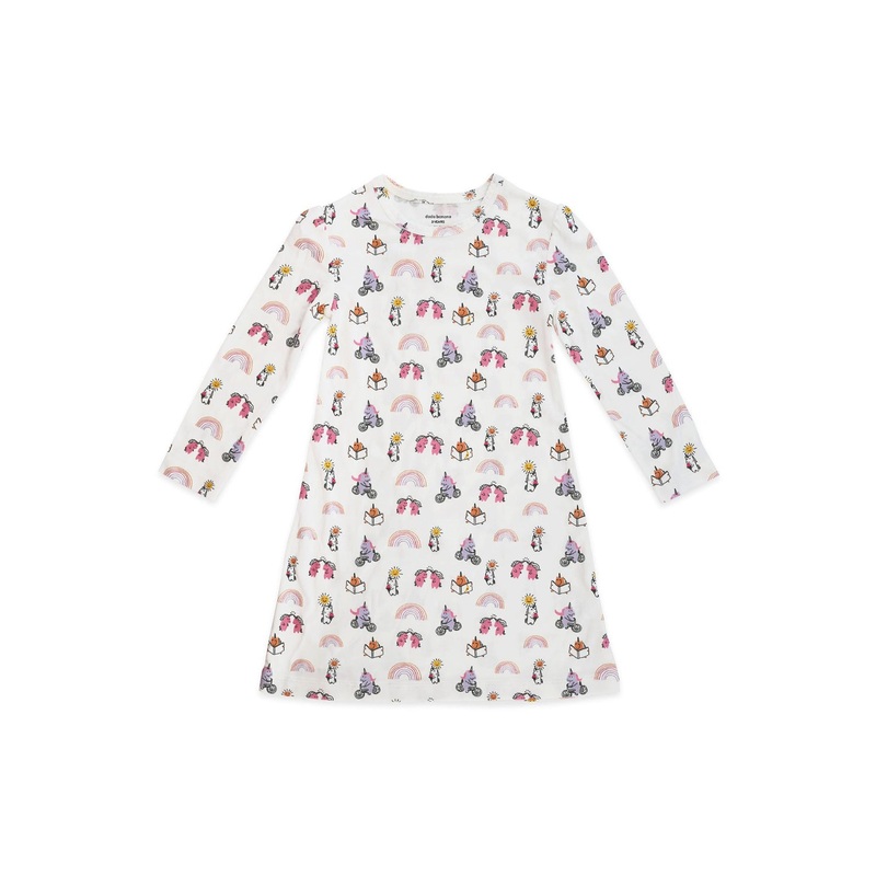 Classic design for versatile day or night wear. Features a popular Unicorn print. Perfect for playful outings and casual events.