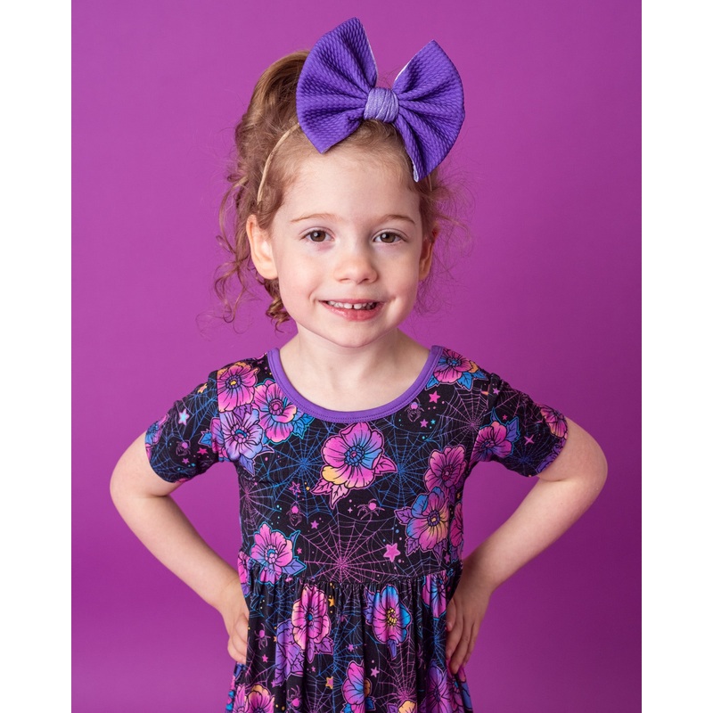 As cute as can be! Perfect finishing touch to any outfit! Made of 95% Polyester and 5% Spandex. One size fits most newborns through toddlers. Toddler bow measures approximately 5" wide. WARNING: Not for use while sleeping - adult supervision required. Colo