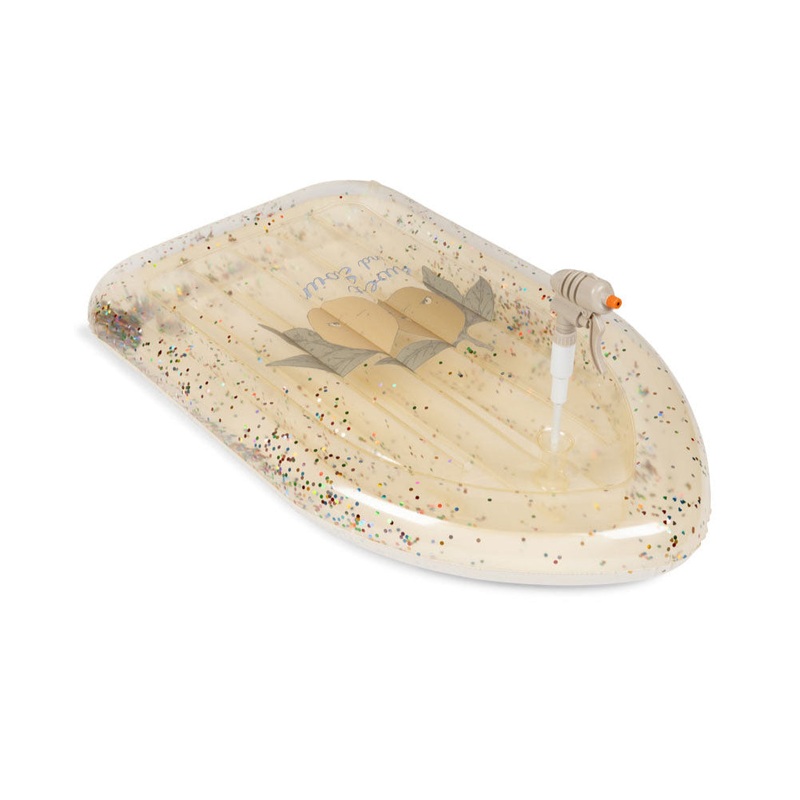 Inflatable transparent float with glitter. Designed with a water splasher.