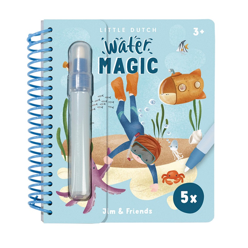 This looks like magic! With this Little Dutch Jim & Friends watercolour book, you can make the most beautiful creations of the different professions of Jim and his friends. On each page, a piece is already coloured in so you have a hint of the drawing that is hidden there. Fill the included special pen with water and start drawing. When water hits the cardboard, the coolest drawings appear, including jungle, farm, universe and much more. When the paper dries up you can redraw the drawing again, giving you fun time after time. The book is made of sturdy cardboard with recognisable Little Dutch designs and colours and has a handy ring binder. The ideal activity for at home and on the go!