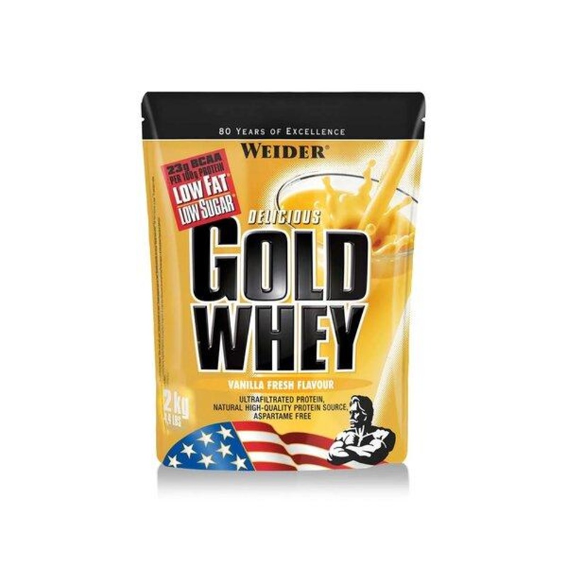 SHORT DESCRIPTIONLow fat and low sugar ultrafiltrated protein, aspartame free.DESCRIPTIONWeider Gold Whey Protein is a drink mix powder rich in whey protein. Recommended training phase: Muscle phase, build-up phase and definition phase (if mixed with water