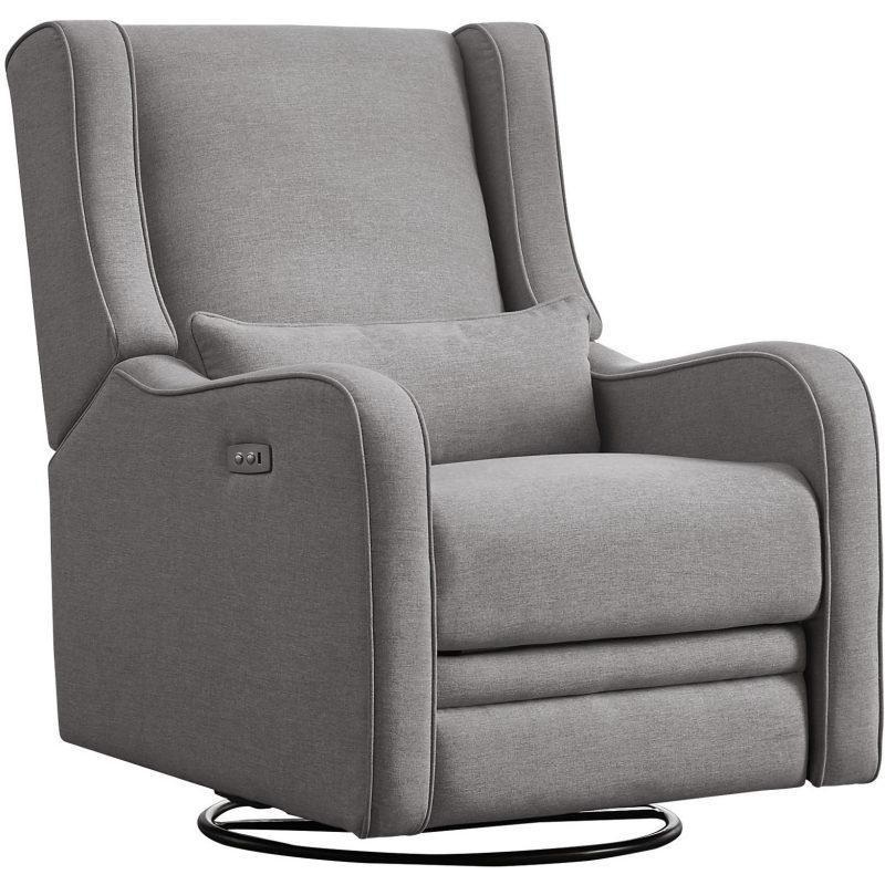 Designed with ultimate comfort in mind, the Elsa Swivel Glider and Recliner offers soft, plush seating, smooth rocking and gliding motions, and reclining capabilities. This recliner also comes with built in USB charger, perfect for any nursery.FEATURESGent