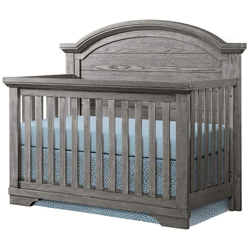The Foundry Arch Top Crib converts to a Daybed, Toddler Bed, and Full Bed.FEATURESSolid hardwood constructionSteel spring mattress support with three height adjustmentsSturdy design & easy conversionNo moving partsConversion kits sold separatelyDimensions: