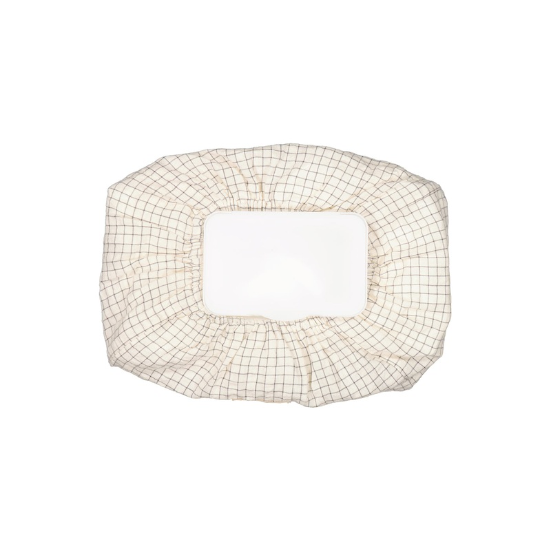 Cover for wet wipes, with elastic closure that fits around the lid. Fits a standard size pack of wet wipes. Measures 20cm x 12cm Standard 100 by OEKO-TEX certified (OEKO-TEX STANDARD 100 license no. 11-32276)