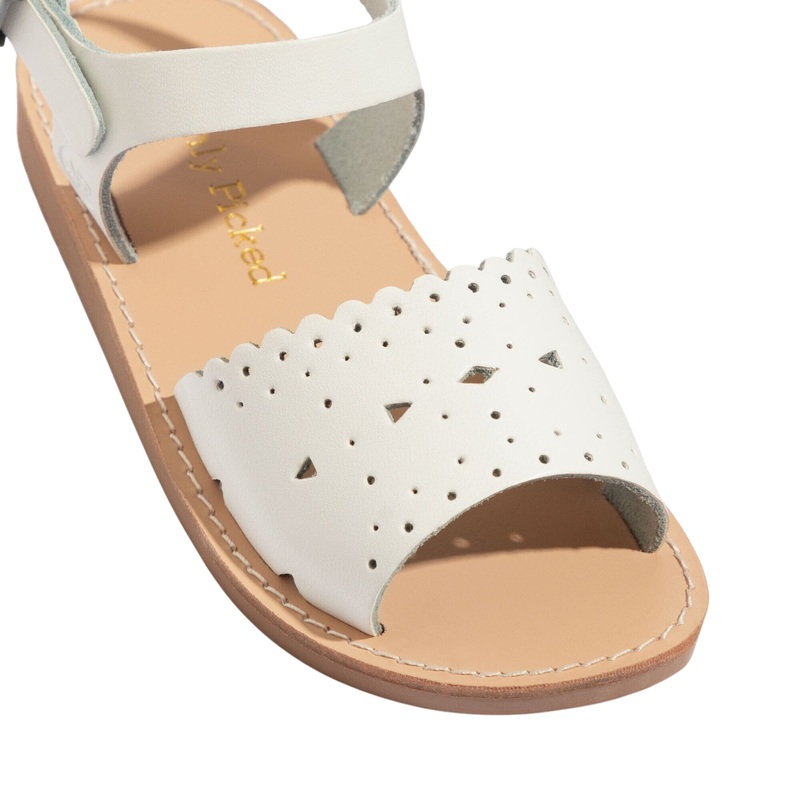 Crafted from genuine leather for a luxurious feel and durability. Custom Italian prong-free buckle ensures a hassle-free on-and-off experience. Eyelet cutout details blend style with a secure fit for adventures. Custom cushioned rubber outsole for added co