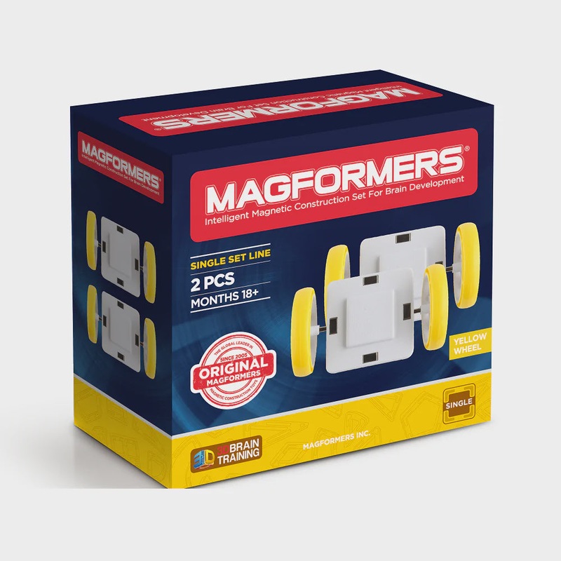 Add some wheels to your collection! These special coloured wheels connect with regular Magformers square pieces so that you can build cars, trucks or any other vehicle you can imagine! These wheels come in red, yellow and blue!