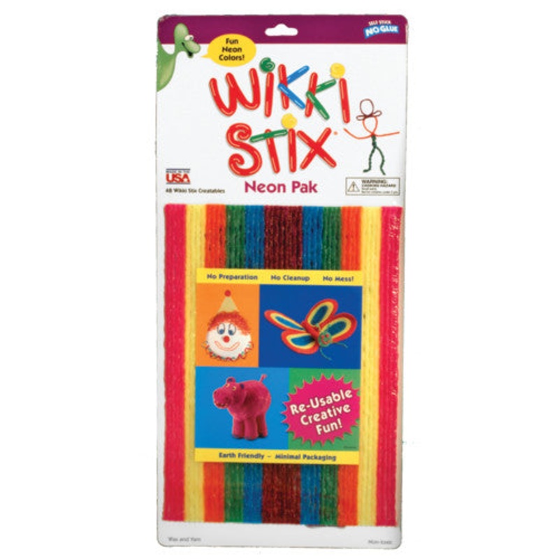 The Original Neon Wikki Stix!Includes 48 eight-inch Wikki Stix in six hot neon colors plus illustrations, play and craft ideas on the back. Perfect for home, school, playtime and more.Colors include: Hot pink, Brite Yellow, Tangerine orange, Lime Green, El