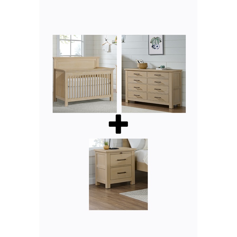 • Set Includes Newcastle Windsor Sandstone Convertible Crib + 8-Drawer Dresser + 2-Drawer Nightstand