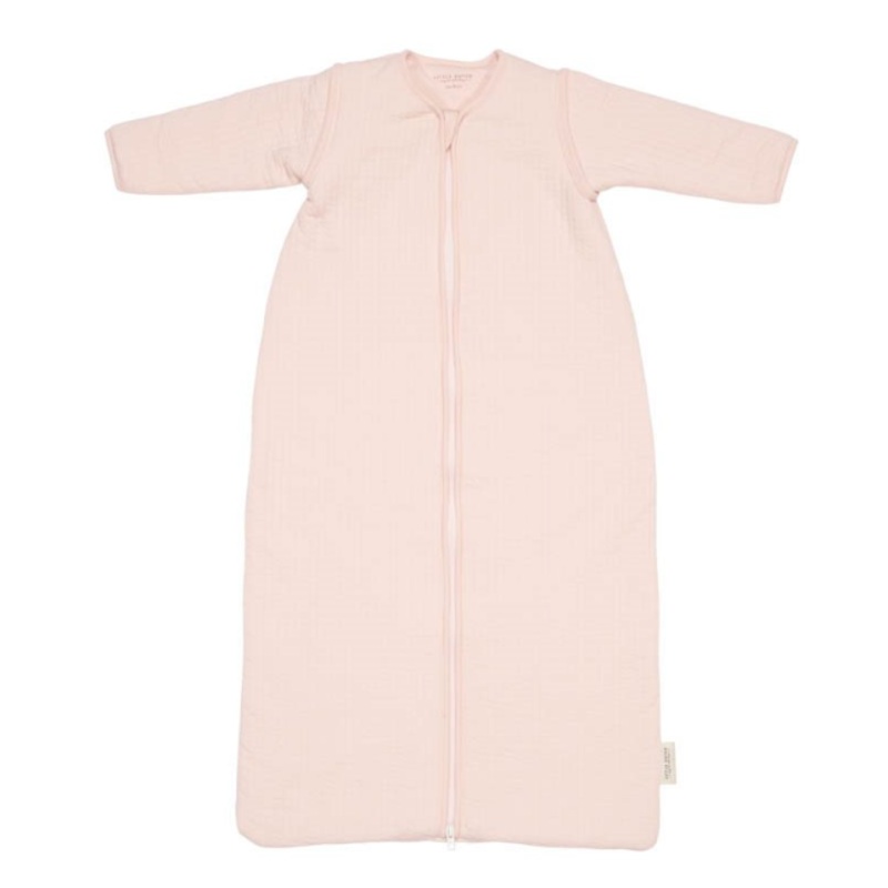 Little Dutch’s winter sleeping bags with detachable sleeves are ideal for cold winter days. A winter sleeping bag ensures your child can sleep comfortably and safely. A sleeping bag makes it harder for your child to roll from their back onto their stomach, climb out of bed or throw off their covers as they toss and turn in their sleep. The winter sleeping bag has a zipper on the front that opens from the bottom to the top. This prevents your child from getting out of the sleeping bag on their own. This winter sleeping bag with from the Pure Soft Pink collection has a lovely soft pink colour. The product has a TOG value of 2.6
