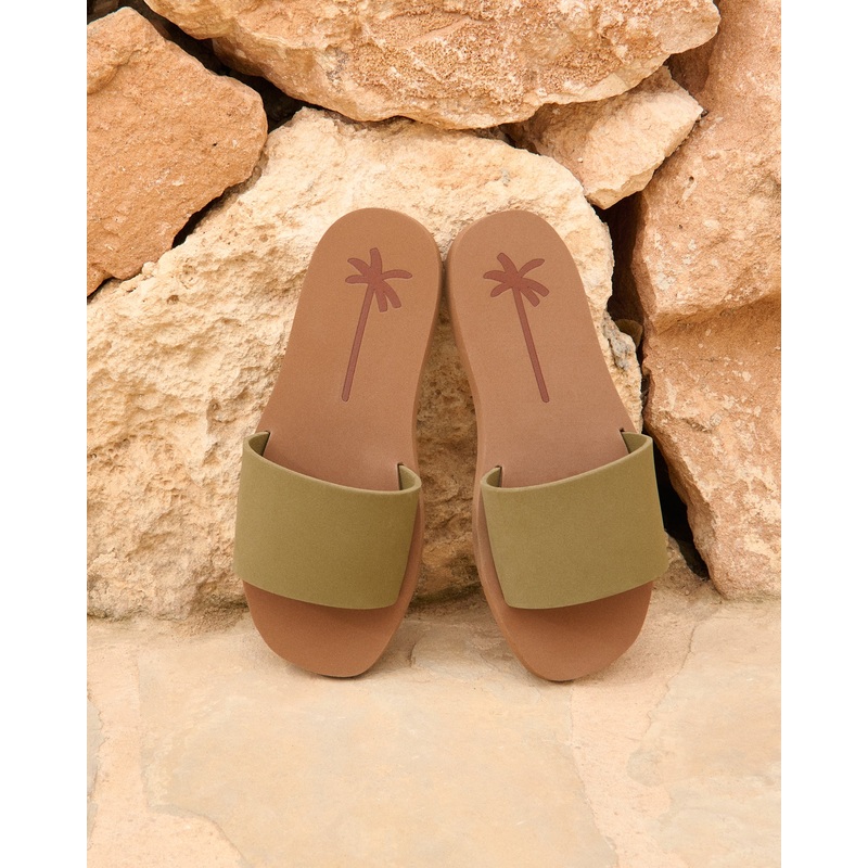 Crafted from EVA foam, a waterproof, flexible, resistant and washable vegan material, they are perfect for the beach.