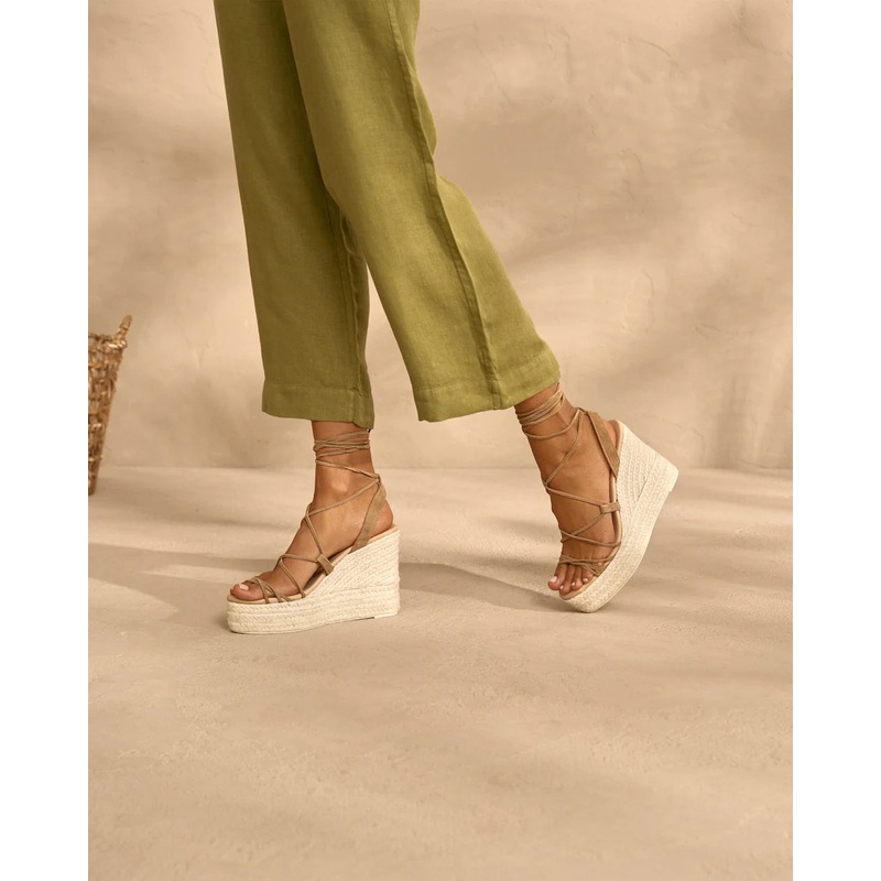 Women’s Soft Suede Wedge Espadrilles Lace-Up – Champagne Beige
