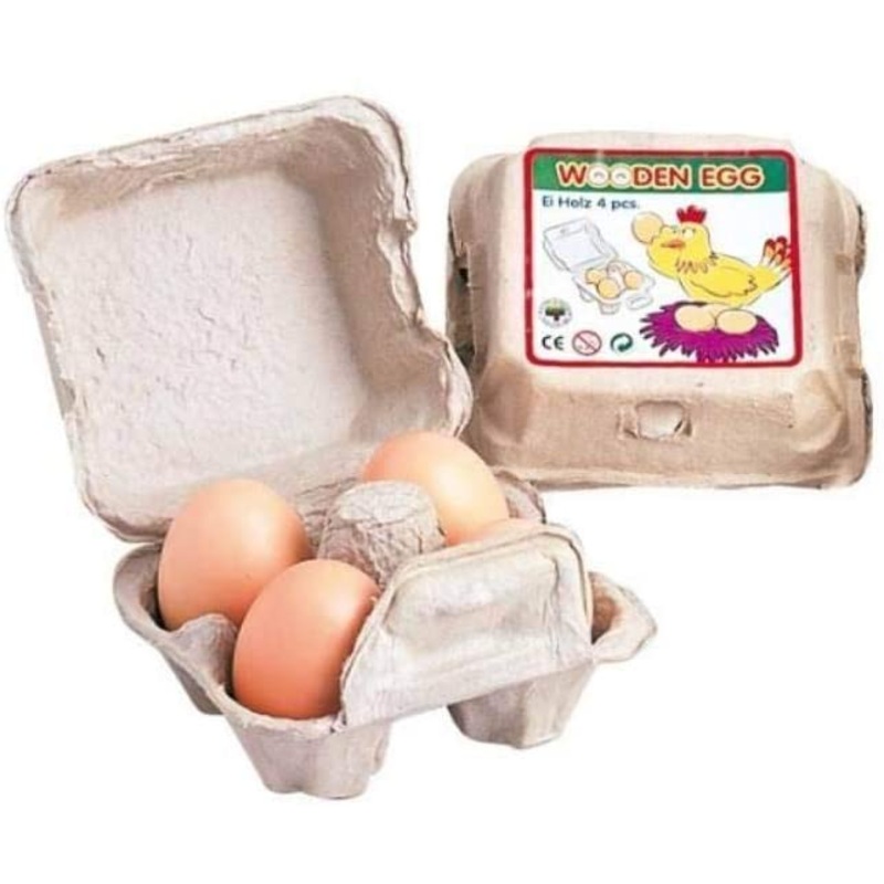 Every play kitchen could use eggs - whether for baking or frying.This cardboard egg container includes 4 brown wooden eggs.Made in GermanyCardboard carton with wooden eggsSize: 2"