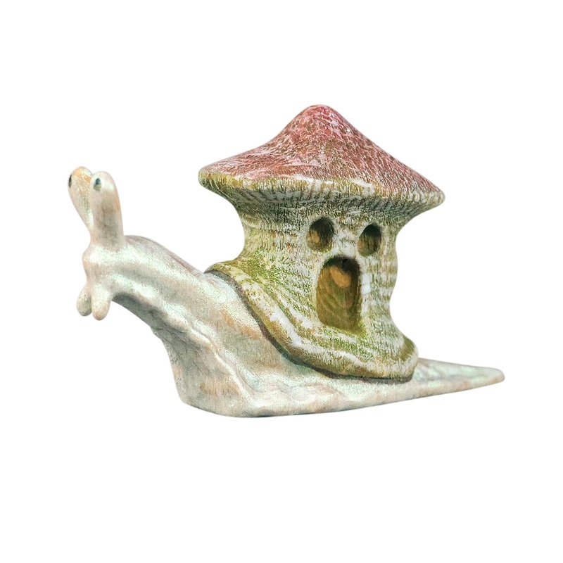There is something really magical about these creatures. Youll see this magic in the water-based colours that have been used, but also in their wooden carved shells that resemble a real house!